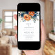 Invitation Modern Navy Burnt Orange Florals QR Code Wedding
