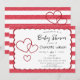 Invitation Modern Red Chalk Stripes Triple Hearts Baby Shower