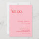 This modern retro pink and red we do wedding invitation features a bold and stylish layout. The soft pink background is paired with rich red typography to create a clean retro modern look. The large “We Do” headline adds a confident and contemporary feel while keeping the design elegant and simple.