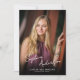 Cette élégante invitation complète de remise de diplômes en photo est parfaite pour une grande fête élégante. L'avant offre de l'espace pour une photo verticale qui remplit la carte entière et est accentué avec un élégant script d'écriture pour le nom du diplômé. Personnalisez le côté arrière de la carte avec une autre photo du diplômé et les détails de votre invitation de parti.