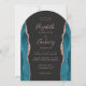 Invitation Modern Teal Rose Gold Agate Dark Arch Wedding