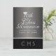 Invitation vos invités de 10ème classe à la réunion dans le style avec cette invitation de carte plat moderne. avec un arrière - plan noir brillant bordé au fond par bande noire et faux argent. Un monogramme défraîchi pour votre lycée ajoute une touche d'élégance. Personnalisez tous les détails de votre célébration à l'avant et à l'arrière de la carte. Conçu par l'artiste ©Susan Coffey.