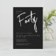 Carton d'invitation d'anniversaire 40 ans moderne noir avec écriture/typographie blanche. Articles assortis et gamme de fête également disponibles. Veuillez utiliser le bouton « m'envoyer un message » ci-dessous pour obtenir de l'aide pour une personnalisation supplémentaire et des demandes spéciales. © Zoe Chapman Design