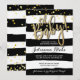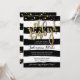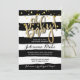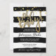 Tendance, cette invitation présente un fond rayé à l'aquarelle noir et blanc et des lettres et des confettis dorés qui tombent en arrière-plan.
