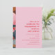 Définissez le ton d'une célébration de fête d'engagement fabuleuse avec ce schéma de couleurs vibrant de rose et de rouge. Cette invitation colorée a un look de designer avec des formes arrondies rose terracotta et bleu clair sur un fond bleu foncé. Le modèle de texte dans une police contemporaine et nette avec une ambiance moderne et porte le thème à merveille. Œuvre originale de Caroline Bonne Müller.