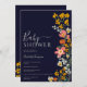 Invitation Moderne automne fleurs rétro baby shower bleu mari