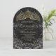 Invitation Moderne Black Gold Tiara Crown Quinceanera