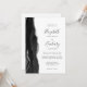 Le bord gauche de cette élégante faire-part de mariage moderne est orné d'une bordure en aquarelle noire et d'une parties scintillant en faux argent. Le texte personnalisable combine écriture manuscrite, copperplate et polices italiques en gris fusain sur un arrière - plan blanc. L'envers offre de l'espace pour les détails mariages sur un arrière - plan blanc solide, ainsi qu'un code QR que les clients peuvent scanner pour visiter votre site Web et RSVP, ce qui permet d'économiser le coût d'impression et d'envoi de cartes RSVP séparées.