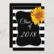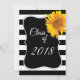 Invitation Moderne BlackWhite Stripe Sunflower 2018 Graduatio