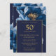 Invitation Moderne Bleu Nuit Floral Élégant 50e Anniversaire