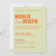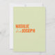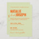 Ce faire-part de mariage est parfait pour votre mariage si vous recherchez un design unique et facile à éditer.Une élégante invitation minimaliste minimaliste mariage orange vert modèle unique invitation. Ce qui présente un arrière - plan clair clair clair clair. Et les prénoms de mariée et de marié orange gras . et des informations modifiables avec des noms également dans le dos. Abordable et il est aussi numérique électronique e-invitation si vous voulez l'envoyer par texte ou e-mail. Toutes les informations sont personnalisables en cliquant sur le bouton personnaliser. Alors attrapez-le et faites-le vous pour que vous fassiez de vous des invitations engagés et enthousiasmés.