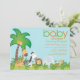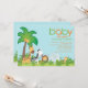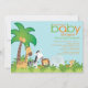 Commencez votre baby shower orienté de jungle de safari outre de la droite avec nos invitations mignonnes et modernes superbes de baby shower d'animaux de jungle. Notre invitation de baby shower de safari comporte un palmier avec une girafe, un zèbre, un lion, un éléphant et un tigre réglés sur un arrière - plan brun avec le lettrage vert et orange. Le dos des invitations coordonne avec l'avant et comporte un hippopotame doux. Invitation parfaite d'animaux de jungle pour un baby shower de filles de safari, "le baby shower neutre" ou le baby shower de garçons de jungle. Vérifiez notre magasin chez www.celebrateitinvtes.com une grande sélection des invitations de baby shower de safari et de baby shower de jungle.