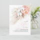 Cartes d'invitation de baptême à l'aquarelle élégante avec orchidées blanches, roses roses, feuillage tropical séché et herbe de pampas