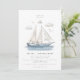 Moderne Elegant Watercolor Sailing Yacht Faire-part de mariage - Donnez le ton pour votre journée spéciale avec ce magnifique faire-part de mariage à thème nautique. Un voilier d'aquarelle gracieux navigue sans effort à travers un océan serein bleu saphir, ses voiles flottant doucement dans la brise. Au-dessus, des nuages doux et clairsemés dérivent dans le ciel, tandis que des mouettes délicates s'élèvent gracieusement, complétant ainsi l'ambiance côtière paisible. Ce design sophistiqué allie élégance moderne et charme artistique, parfait pour les couples qui souhaitent organiser une fête balnéaire ou nautique. Les délicats détails de l'aquarelle évoquent des sentiments de romance et d'aventure, invitant les invités à se joindre à vous dans un voyage d'amour et de célébration.