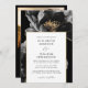Cet élégant faire-part de mariage floral noir et or peut être personnalisé avec vos informations dans la typographie moderne et vos détails mariages au verso, ainsi que votre site web mariage QR code et photo spéciale. Conçu par Thisisnotme©