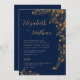 Invitation Moderne Elégant or Floral Navy bleu Citation