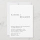 Elégante, intemporelle, minimaliste et classique, avec police de type serif. Cette élégante invitation de mariage conviendra parfaitement aux couples qui recherchent une faire-part de mariage de style simple et minimaliste.