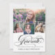 Une invitation moderne de graduation avec le mot "diplômé" sur le devant dans la calligraphie stylisée, plus 4 de vos photos senior préférées. Ajoutez vos propres détails de célébration personnelle à l'arrière. Voici la version en noir et blanc.