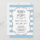 Design élégant avec faux gris argenté (gris) confettis et arrière - plan à rayures bleu et blanc pastel. SHE'S ready to POP! thème baby shower moderne mais élégant. Parfait que l'attente de baby boy party ou baby sprinkle. Tout le texte peut être modifié avec la police et la taille. N'oubliez pas d'obtenir les autocollants de faveur correspondants !