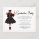 Invitation moderne et décontractée de cérémonie de remise des diplômes en écriture script - Typographie script moderne avec un design minimaliste. Une belle diplômée tient son diplôme et un bouquet de roses roses. La carte est accentuée d'une fine bordure dorée. L'invitation à la fête de remise des diplômes fait partie d'une collection.