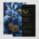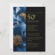 Invitation Moderne Floral Bleu Noir Et Or 50e Anniversaire