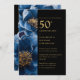 Invitation Moderne Floral Bleu Noir Et Or 50e Anniversaire