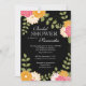 Commencez votre élégante douche nuptiale printanière directement avec notre magnifique invitation à la douche nuptiale florale. Notre jolie invitation à la wedding shower de fleurs comprend de belles mamans roses, orange et blanches et des fleurs de zinnia avec des feuilles de fougères vertes sur un arrière - plan noir moderne. Invitation florale parfaite pour votre douche nuptiale printanière, douche nuptiale estivale ou douche nuptiale automnale. Visitez notre boutique pour voir cette invitation dans des couleurs variées et pour apparier cartes de remerciements, autocollants et timbres-poste.