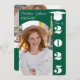 Célébrez votre jalon avec cette élégante invitation à la graduation verte avec un agencement moderne avec une typographie noire audacieuse. Le design avant présente une photo complète avec un texte vertical élégant "Classe de 2025" et une illustration de capuchon de graduation. L'arrière comprend trois photos supplémentaires, des détails de l'événement et de l'espace pour les informations RSVP. Parfait pour les diplômés du secondaire et du collège à la recherche d'un faire-part intemporel et élégant.