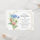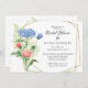 "Modern Geometry Floral Pink n Blue Fête des mariées." 5x7 invitation en papier horizontal. Peinte à la main dans l'aquarelle avec un arrière - plan blanc immaculé qui donne simplicité et élégance au design. Les mamans bleu ciel et plusieurs nuances de fleurs roses sont associées à des fougères sauvages vertes douces. Double bordure asymétrique géométrique pour un design moderne. Copyright, Audrey Jeanne Roberts.