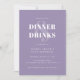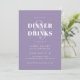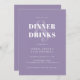 Cette invitation d'anniversaire lilas moderne donne le ton pour une soirée inoubliable. La typographie audacieuse annonce le Dîner & Boissons en toute confiance, tandis que le design minimaliste ajoute une touche d'élégance et de tranchant. Parfait pour les adultes qui apprécient le style, la substance et une nuit bien passée.