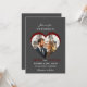 avec un script élégant et une photo en forme de coeur encadrée. La palette de couleurs gris épuré exhale le raffinement contemporain, tandis que le script délicat ajoute une touche intemporelle. Parfait pour les couples à la recherche d'une invitation chic et romantique qui saisit l'essence de leur histoire d'amour.