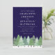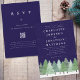 Faire-part de mariage Code QR Forêt de pins persistants de la forêt hivernale sur fond bordeaux, bleu marine et blanc