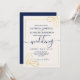 Vos invités aimeront ce design moderne et minimaliste. Des formes simples de feuilles d'or faux contre un arrière - plan texturé aquarelle, donnent à cette invitation unique un look élégant. Complété avec la typographie de style manuscrite en bleu marine. Facile à customiser avec vos propres informations personnelles.