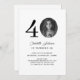 Moderne, minimaliste 40. Anniversaire, invitation blanche. Personnalisé en quelques minutes. Ajoutez vos données, téléchargez votre photo. Vous pouvez modifier le numéro 4, vous pouvez donc utiliser l'invitation pour vos 30., 40., 50., 60. Anniversaire et plus.