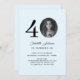 Moderne, minimaliste 40. Anniversaire, invitation bleu clair. Personnalisé en quelques minutes. Ajoutez vos données, téléchargez votre photo. Vous pouvez modifier le numéro 4, vous pouvez donc utiliser l'invitation pour vos 30., 40., 50., 60. Anniversaire et plus.