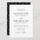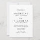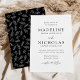 Invitations de mariage élégantes et modernes avec vos détails mariages en lettres noires avec calligraphie manuscrite qui accentue le design. Les invitations de mariage simples comportent un arrière - plan blanc. Le mariage noir et blanc invite à la révérence pour présenter un beau motif de feuillage. Les invitations sont parfaites pour les mariages de jardin du printemps et de l'été.