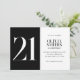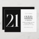 Invitation moderne minimaliste 21ème anniversaire avec design simple avec élégante typographie chic en noir et blanc.