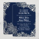 Invitation moderne motif de dentelle blanche mariage bleu mar