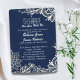 Cartes d'invitation de mariage dentelle blanche florale bleu marine. Cadeaux de mariage dentelle blanche et bleu marine bohème plage. Cartes d'invitation de douche de mariée bleue marine et cadeaux de fête de douche de mariée nautique.
