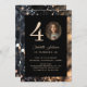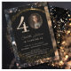 Glamour moderne, Parties scintillant Noir-Or 40. Anniversaire, invitation en argent. Personnalisé en quelques minutes. Ajoutez vos données, téléchargez votre photo. Vous pouvez modifier le numéro 4, vous pouvez donc utiliser l'invitation pour vos 30., 40., 50., 60. Anniversaire et plus.