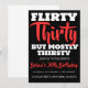 Célébrez votre trente sale en style avec cette invitation à l'anniversaire simple, élégante et sophistiquée! Doté d'un design moderne et propre en caractères gras blancs et rouges en arrière - plan noir, cette invitation est parfaite pour l'adulte qui veut une touche de classe pour son anniversaire d'étape. Personnalisez-le avec votre nom, les détails de la fête.