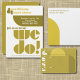Conception et typographie géométriques avec à la fois des courbes douces et des coins pointus. Le type géométrique gras dit "nous le faisons" pour une façon amusante unique d'annoncer votre mariage. Des touches de style les années 70 mais aussi très moderne, cette invitation fait une déclaration sur votre mariage extraordinaire. Joyeux, amusant, et un peu funky. Cette invitation travaille pour une cérémonie qui sera suivie d'une réception dans le même lieu. Avant : Deux noms nichés dans une esperluette unique, les détails de la date et de l'emplacement. Des nuances d'orange brûlée et de rose chaud avec des éclaboussures de verge d'or et de texte blanc. Arrière : orange solide Les coins arrondis de la carte complètent les formes géométriques de la carte. Montré sur l'option de papier blanc Felt qui complète l'ambiance rétro et ajoute une autre touche unique et spéciale à vos invitations. La plupart du texte peut être customisé. Les options qui n'apparaissent pas sous "Personnaliser" sur la page du produit peuvent être modifiées dans l'outil de conception. L'invitation géométrique "We do" fait partie de notre collection Bushwick mix and match dans nos couleurs ginkgo qui comprend des composants de suite mariages et des accessoires d'envoi pour un look complètement coordonné.