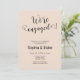 Présentez notre invitation à la fête du Champagne rose moderne et de Black Engagement - un délicieux mélange de style contemporain et de teintes romantiques qui saisit l'essence de votre célébration à venir. Dans un décor qui rappelle le plus beau champagne rose, cette invitation combine harmonieusement le charme luxueux du rose avec l'élégance intemporelle de la police noire pour une invitation qui se démarque vraiment. En son coeur, cette invitation met en valeur les mots "nous sommes engagés" dans une police captivante de script de calligraphie, ajoutant un air de fantaisie et de modernité qui fait écho à l'excitation de votre histoire d'amour. En complément de ce script exquis, le reste du texte est présenté en polices de blocs simples, soigneusement triées dans différentes nuances de noir et gris foncé. L'alignement centré de tous les éléments de texte crée une apparence polie et nette, reflétant la clarté de votre engagement. Votre fiançailles est un chapitre unique de votre histoire d'amour, et notre conception d'invitation capture ce sentiment sans faille. L'association du champagne rose et du noir résume à la fois l'amour et le raffinement de votre voyage vers le mariage. Chaque choix de police améliore l'intrigue visuelle, invitant vos proches à se joindre à l'anticipation de votre journée spéciale. Une fête fiançailles aussi spéciale que la vôtre mérite une invitation qui reflète votre style distinct. Notre Invitation de la partie Modern Pink Champagne et Black Engagement n'est pas seulement une invitation, c'est un aperçu de votre histoire d'amour, un aperçu de la célébration à venir, et un gardien chéri pour vous et vos invités. Laissez la fusion du luxueux champagne rose, du noir intemporel et du design contemporain marquer le début de votre joyeux voyage vers le mariage.
