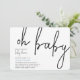 Venez rencontrer un grand nombre de clients avec cette invitation baby shower délicieusement chatoyante et particulièrement attirante. Ce invitation moderne mais minimaliste présente "Oh Baby" en gros script noir avec les détails du baby shower en dessous.