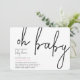 Venez rencontrer un grand nombre de clients avec cette invitation baby shower délicieusement chatoyante et particulièrement attirante. Ce invitation moderne mais minimaliste présente "Oh Baby" en gros script noir avec les détails du baby shower en dessous et le côté arrière est rose solide.