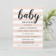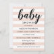 Les invitations à la douche pour bébé chic sont dotées de rayures horizontales blanches et roses propres, avec un texte noir contrasté qui peut être personnalisé pour votre événement. On customise les couleurs arrière - plan noir et pastel, rose vif.