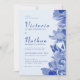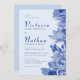 Invitation Moderne Retro Dusty Blue Chinoiserie Floral Mariag