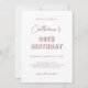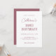 Célébrez dans le style avec cette invitation chic moderne, trempée dans la riche couleur foncée poussiéreuse rose et accentuée par la typographie rétro qui apparaît avec personnalité. Un script minimaliste élégant met en valeur votre nom, ajoutant une touche d'élégance à l'atmosphère ludique. Parfait pour marquer un jalon avec flair, ce design donne le ton pour une nuit de plaisir inoubliable.