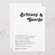 Ce faire-part de mariage moderne et rétro est parfait pour votre mariage d'été bohème vintage unique et branché. Le lettrage est une police boho noir chic des années 70 qui donne à ce design classique minimaliste vibes hippie super. Vous pouvez ajouter vos propres graphiques ou images si vous voulez le customiser. N'hésitez pas à nous contacter pour toute question concernant la conception du produit ; nous sommes heureux de vous aider !