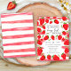 Invitation Moderne rose blanc rayures fraise 1er anniversaire
